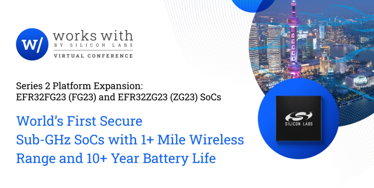 中国,北京 – 2021年9月15日 – Silicon Labs(亦称“芯科科技”,NASDAQ: SLAB)今日宣布推出全新的Sub-GHz片上系统(SoC),这是全球率先推出的具备远距离射频和节能特性且通过Arm PSA 3级安全认证的Sub-GHz无线解决方案,可以满足全球对高性能电池供电型物联网(IoT)产品的需求。EFR32FG23(FG23)和EFR32ZG23(ZG23)SoC解决方案扩展了Silicon Labs屡获殊荣的Series 2平台,可支持多种调制方案和先进的无线技术,包括Amazon Sidewalk、mioty、无线M-Bus、Z-Wave和专有物联网网络,从而为开发人员提供灵活的、多协议的Sub-GHz连接选择。