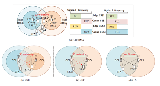 Multi-AP coordination(多AP协作优化),这点可能是Wi-Fi 7中的一个重点。关于多AP的协作问题。目前在802.11的工作模式下,AP与AP之间实际上是没有协作的。存在的一些厂家定义的协作也仅仅是优化信道的选择,从而避免AP间的冲突。