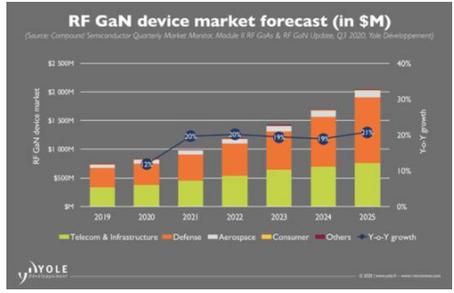 GaN RF设备市场正处于高速增长边缘,尤其在在国防领域。