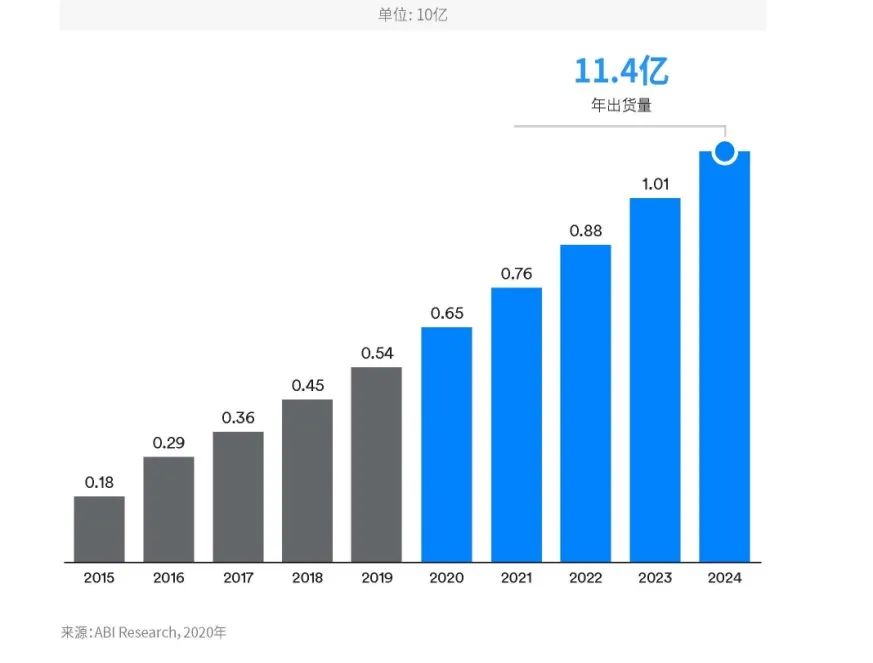 图2:蓝牙全球市场年度出货量(资料来源:ABI Research)