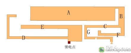 在图14中,该天线主要利用了分枝、倍频和耦合的原理,其中D分枝和E分枝为直接馈电的两个谐振分枝,实现两个不同的工作频段;(G+C+F)分枝和(G+C+B+A)分枝为耦合枝节的两个谐振分枝,通过不同的长度实现两个不同的工作频段;(G+C+B+A)为天线中最长的一个分枝,除了自身的基波频段外,还有产生谐波倍频工作频段,具体分析如下: