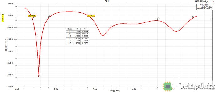 图16印刷单极子手机天线S11仿真结果