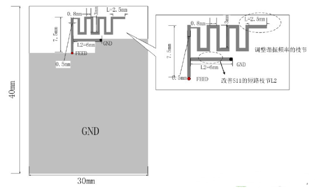 天线的谐振频段是由天线的有效电流路径长度决定的,因此要调整工作频段,就要考虑从天线的物理长度入手。