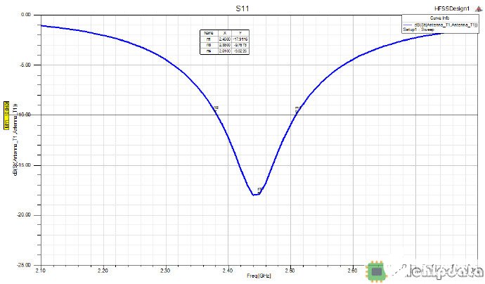 从仿真图中可以看出,S11的仿真结构是比较好的,完全可以达到2.45GHz的工作频段和带宽要求。