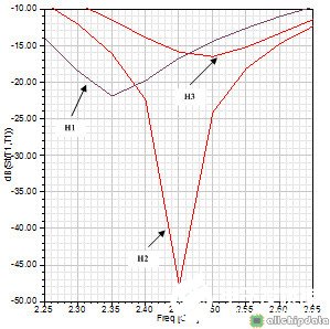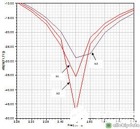 取L1=17mm,L2=16mm,L3=15mm;H1=5mm,H2=5mm,H3=3mm;S1=4mm,S2=5mm,S3=6mm,从以上的仿真结果,可以非常清晰的看到三个主要常数对天线性能的影响:即谐振长度L用于调整天线的工作频率,越短则频率越高;天线高度H可用于调整天线的带宽,H越大,带宽则越大;S则用于调整天线的回波损耗S11性能。具体的影响效果总结如下: