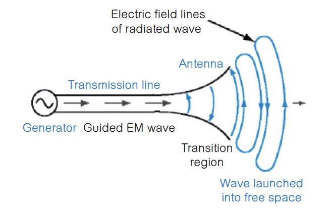 天线是一种能量转换器——它从一侧接收导行电磁波,然后从另一侧辐射出自由空间球面波。任何电线或多或少都有这一现象,它们会将穿过自身的电磁能量辐射出去一部分——这也正是使用电气绝缘的原因之一。但是,通常在谈论天线辐射电磁能量时,它实际上是指一种非常特殊的辐射——有用的电磁辐射。