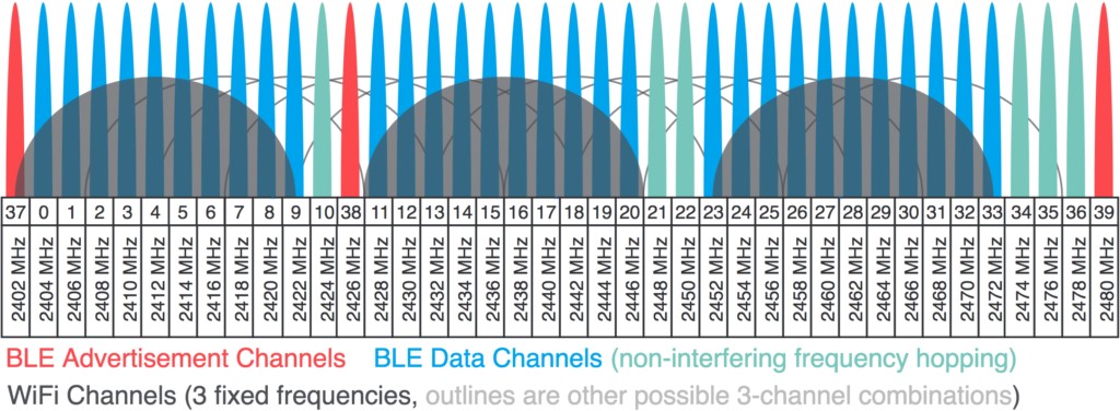 图6:蓝牙使用了大量的信道来保持通信链路的独立性。