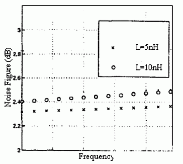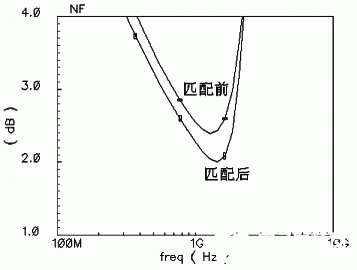 原因是M1和M2为单独的管子,它们之间存在较大的寄生电容,影响了信号的传输,从而恶化噪声系数。而加入的电感能加强他们之间的匹配,使噪声性能和增益有所改善。
