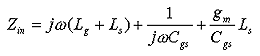 在图1、图2中,Lg为栅极串连电感,LS为源极串连电感,Cgs为等效栅源电容。由图2可得: