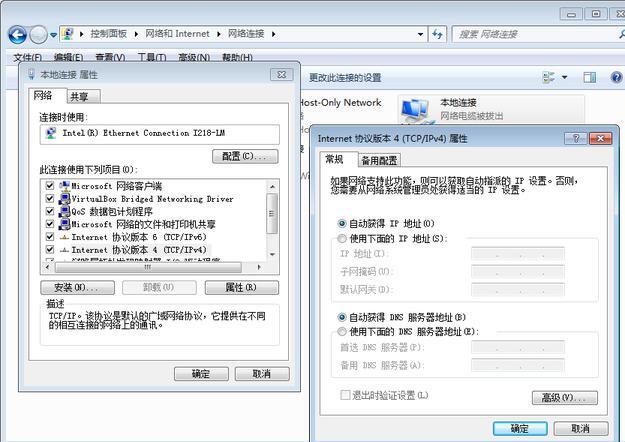 打开电脑windows菜单(以win7为例),选择控制面板----网络和Internet----网络和共享中心----更改适配器设置----右键本地连接----属性----Internet协议版本4(TCP/IPv4)----选择自动获得IP地址和自动获得DNS服务器地址并点击确定。