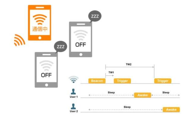 TWT,Targetwaketime,目标唤醒时间。Wi-Fi6采用了TWT技术,可以定义每个终端的不同唤醒时间,也就是只有终端设备在收到自己的“唤醒”信息后才进入工作状态,其余时间均处于休眠状态,借此可节省功耗,延长电池寿命。