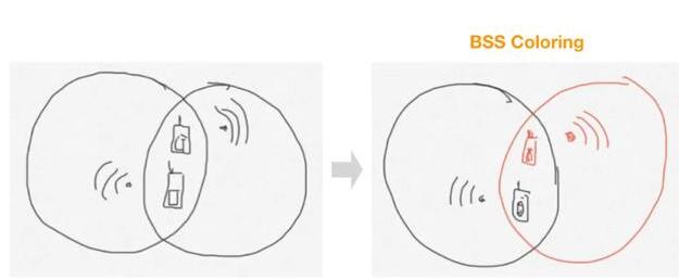 BSSColoring就是为了解决这种情况而生,它通过在数据报头加入6bits的BSSColor,让数据可在同一信道传输而不会互相干扰。