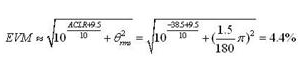 上式中ACLR是指相邻信道的ACLR测量值,是累积相位误差,9.5是针对TD-SCDMA标准的一个修正值。附录一给出了该公式的一个简单推导过程。