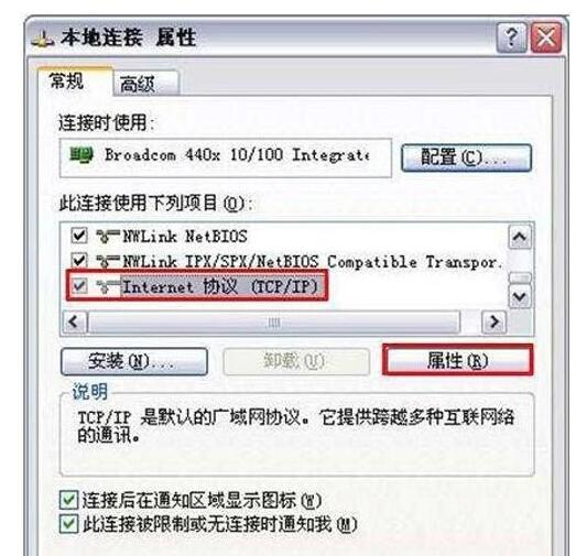 步骤二、是电脑IP地址的设置,路由器默认已近开启DHCP服务,所以我们把电脑IP设置成自动获取就可以了。方法是:右键单击“网上邻居”——“属性”——右键单击“本地连接”——“属性”出现如下窗口: