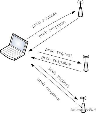 这时候是无线网络终端(手机或电脑)处于接收状态,扫描所有的可用无线信道,就像打开收音机旋转调谐旋钮一样,接收不同信道的无线AP发送的beacon信令
