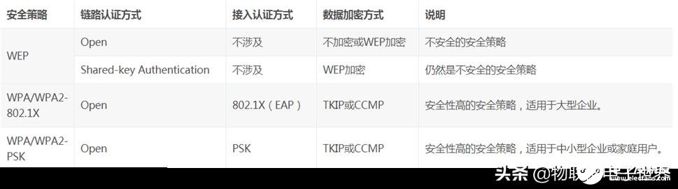 上图就是现在Wi-F支持的认证方式,WEP是淘汰的技术,现在主要使用的是WPA2-psk(家庭或小型场所)WPA2-802.1x (企业版)