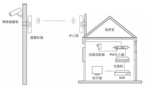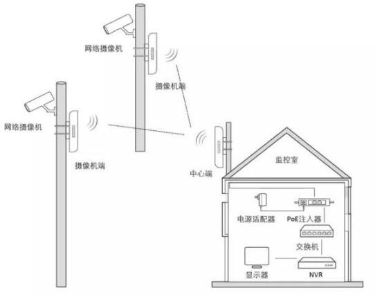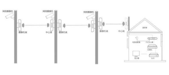 中继方式:从机房中心端开始连接第一个摄像机端,然后从第一个摄像机端的中心端再连接第二个摄像机端。通常的室外网桥品牌都支持不超过6次的中继。