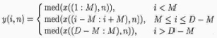 Y(i,n)=med(X(i+k,n),k∈[-M,M]),n=0,…,N-1 (5)