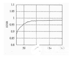 波形平均的干扰能量抑制比为IESR:97.496% 中值滤波的干扰能量抑制比IESR=99.672% 。图4给出了波形平均算法的IESR与算法平均次数M的相对应关系,可见随M 的增大,IESR逐渐提高,但在M 》10O时,IESR基本上保持不变,所以再增加波形平均的次数,算法的IESR没有明显提高。