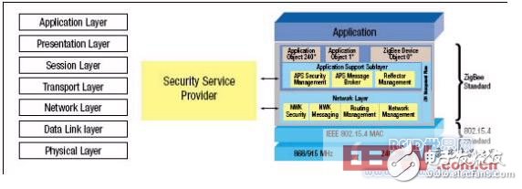 上述所列各项表明需要对许多项目进一步澄清,因此首先对标准化的较高层协议进行描述。与802.15.4相比,如图4所示,ZigBee可向上实施至OSI无线应用网络模型的传输层,甚至能够达到部分会话层。
