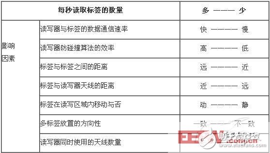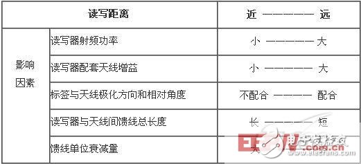 表一 读写距离和几个因素的关系(除读写器和标签本身的性能外)