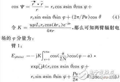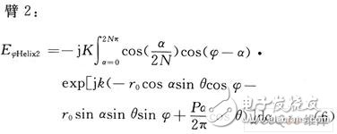 双臂螺旋天线的双臂上电流近似为:
