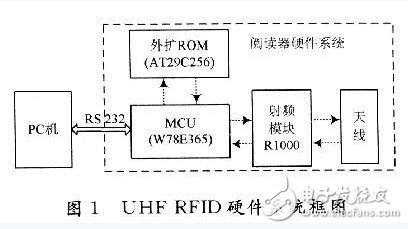 RFID技术是一种非接触的自动识别技术,通过无线射频的方式进行非接触双向数据通信,对目标加以识别并获取相关数据。RFID系统通常主要由电子标签、读写器、天线3部分组成。读写器对电子标签进行操作,并将所获得的电子标签信息反馈给PC机。射频识别技术以其独特的优势,逐渐被广泛应用于生产、物流、交通运输、防伪、跟踪及军事等方面。按工作频段不同,RFID系统可以分为低频、高频、超高频和微波等几类。目前,大多数RFID系统为低频和高频系统,但超高频频段的RFID系统具有操作距离远,通信速度快,成本低,尺寸小等优点,更适合未来物流、供应链领域的应用。尽管目前,RFID超高频技术的发展已比较成熟,也已经有了一些标准,标签的价格也有所下降;但RFID超高频读写器却有变得更大,更复杂和更昂贵的趋势,其消耗能量将更多,制造元件达数百个之多。然而,这里的设计采用高度集成的R1000,可以解决上述问题,既可降低芯片设计中的复杂性和生产成本,又能使制造商制造出体积更小,更有创新性的读写器,从而开拓新的RFID应用领域。