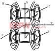 耦合器的核心部分是两组围绕在中空圆筒体上的半径为r、匝数为N的线圈2、3,两组线圈平行共轴,中心间距L正好为线圈半径r,从而构成了一个亥姆霍兹线圈[5-6]。如图6所示。