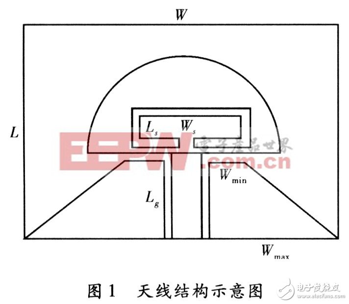 天线的结构,如图1所示,天线制作在相对介电常数为