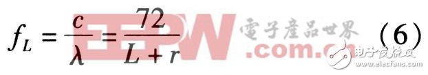 对于单极微带天线,可利用圆柱体近似法计算出低点的谐振频率,即VSWR最先2的频率点。文中是通过正方形辐射贴片的等效转换,最终推导出低点谐振频率与半圆形辐射贴片半径的关系式,即