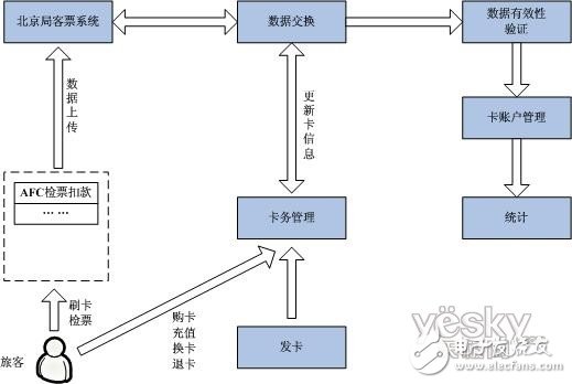 (7)快通卡系统接收从客票系统传过来的检票存根,验证数据的合法性,完成卡账户管理和统计。