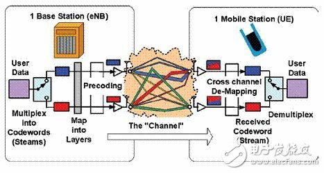 在WLAN和WiMAX中,用户传输数据被复用到多路码流中时使用相同调制方式(QPSK、16QAM等),而在LTE中则可能对每一路码流使用不同调制方式。因此信道恢复与数据恢复之间有明显区别,这是有关MIMO的另一个基本原理。
