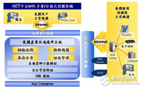 以Reader(读取器)读取Tag(电子标签)资料,透过e化平台控管钢瓶库存,气体厂与经销商皆可透过e化平台,轻松管理存放于气体厂之库存。