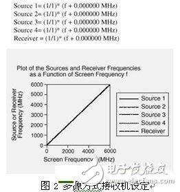 37100C系列矢网具有强大的多源控制功能。利用多源控制功能,可以很方便的进行混频器、倍频器测量。无需外部控制器控制,就可以独立控制两个信号源和一个接收机。可分别设定两个信号源的频率范围和输出功率,以及接收机的扫描范围。多源方式的设定,包括定义每段的频率范围和段内信号源、接收机的工作方式。源1为内部源,用于驱动端口1和端口2,源2为外部源,可通过GPIB接口编程控制;矢网与外部信号源的同步通过10MHz时基控制。图2为多源方式仪器设定。