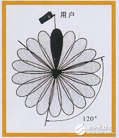 (1)波束转换智能天线波束转换智能天线具有有限数目的、固定的、预定义的方向图,它利用多个并行窄波束(15°~30°水平波束宽度)覆盖整个用户区,每个波束的指向是固定的,波束宽度也随天线元的数目而确定(见图2)。波束转换系统实现比较经济,与自适应天线相比结构简单,无需迭代,响应快、鲁棒性好。但预先设计好的工作模式有限,窄波束的特性将极大地影响系统性能。
