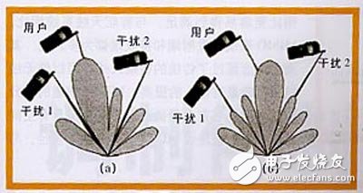 图 3自适应阵列智能天线(a)与束转换智能天线(b)的比较