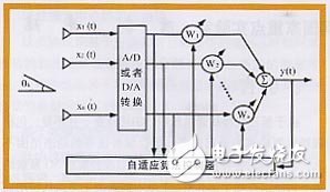 智能天线引入空分多址(SDMA)方式。在相同时隙、相同频率或相同地址码的情况下,用户仍可以根据信号空间传播路径的不同而区分。实际应用中,天线阵多采用均匀线阵或均匀圆阵。智能天线系统由天线阵;波束成形成网络;自适应算法控制三部分组成(见图1)。