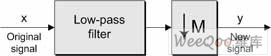 “抽取因子”是指输入采样率与输出采样率之比。通常用字母M来表示。在上面的例子中,输入速率是输出速率的4倍,所以M=4。