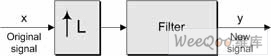 “内插因子”指的是输出采样率对输入采样率的比例。这通常用字母L来表示。在上面的例子中,输出速率4倍于输入速率,因此,L = 4 。这个过程的图形说明参见图7。