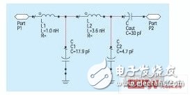 输出匹配的具体电路不同,最终的损失也不同。在微波频谱的低端,传输线占据了太多的空间,所以采用了集总元件的方法。在一个功率放大器模块的典型输出匹配电路中,使用大容量的隔直电容器来防止直流电流从功率放大器电源流到负载中去(图2)。用表面贴装电容器和印制电感器以及表面贴装电感器组成的两节低通匹配网络,可以将50Ω的名义负载阻抗转化成合适的负载线。而负载线的设置是根据指定的功率放大器输出功率和可用的电源电压。手机放大器的负载线变化范围为1Ω到5Ω。