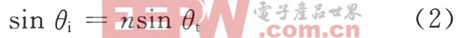 式中:θi为入射角;θt为折射角;n为第二种介质相对于第一种介质的折射率。