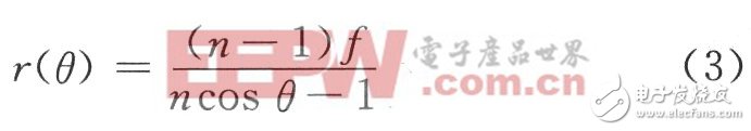 图3所示为双曲型介质透镜示意图,它是一种单面透镜,即只有一个面使微波射线发生折射,其第一个面(照明面)为旋转双曲面,第二个面为平面。其中,旋转抛物面方程为: