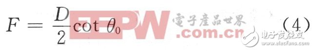 对于要加载在喇叭口径上的介质透镜,若喇叭的半张角为θ0,喇叭口径为D,则由几何关系可以求得喇叭透镜焦点到透镜第二个面(平面)的距离为: