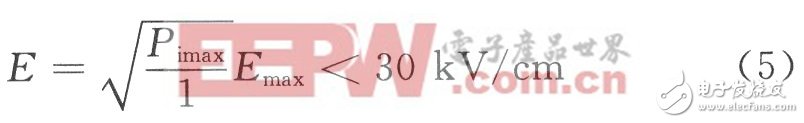 通过计算可以求得对应输入功率为1 W时介质透镜外表面的最大电场Emax。由于功率与电场的幅值平方成正比,当馈源输入的最大功率为Pimax时,可以得到介质透镜外表面的电场为: