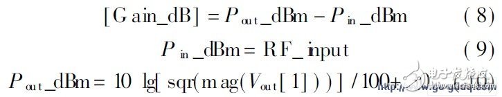 Vout [ 1]为基波项, sqr为取平方函数, mag为取基波的幅度的函数, 电压是峰值因此平方后要除以2,负载接50Ω, 接下来对括号里计算的结果取10倍的对数并加30便转化成单位为dBm 的输出功率。