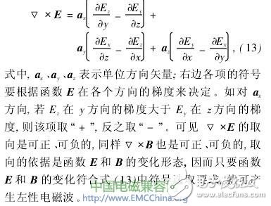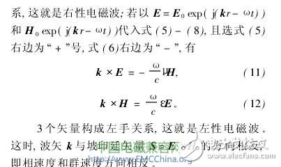 当式(5)右边为“+”号,式(6)右边为“-”时,可导出式(11)、(12),也就可产生左性电磁波。式(5)、(6)的符号这样选取是否可能?可在在三维空间分析式(5)有