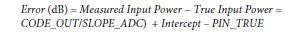 在工厂校准过程中计算并存储SLOPE_ADC和Intercept 之后(存储在非易失性RAM中),就可以利用它们通过下式计算设备在现场工作时的未知输入功率水平PIN: