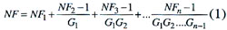 本文所设计的低噪声放大器的性能指标为:在1.90GHz~2.10GHz的频段内,功率增益Gp≥30dB,噪声系数NF≤1dB。考虑指标要求,拟采用两级放大级联技术来实现。n级放大器噪声系数可表示为:
