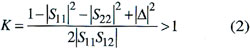 其中△=|S11S22-S12S21|。当K》1且△《0时,放大器处于绝对稳定状态;K《1,电路则潜在不稳定。