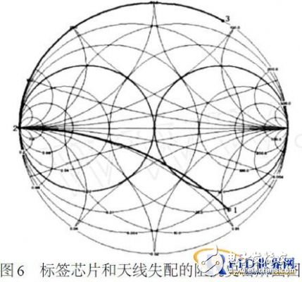 天线和芯片接口处没有复功率波反射,芯片和天线的共轭匹配使天线将从空中接收到的射频能量的一半传递给芯片,达到功率传输的最大化。开关K1闭合时,芯片处于状态1。图6所示为标签芯片输入阻抗变化的路径。